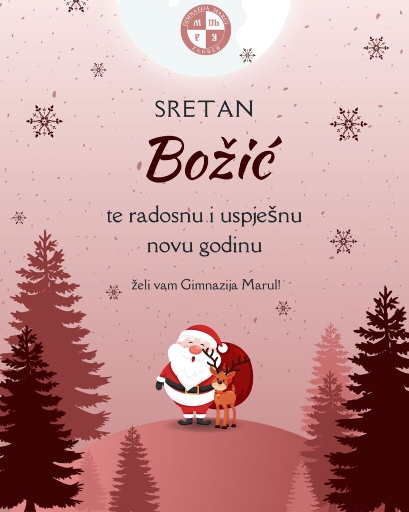 Radi korištenja godišnjeg odmora škola je zatvorena od 24. 12. 2025. do 6. 1. 2026. godine. Od 7. 1. 2026. referada i tajništvo počinju s radom. Svima želimo vesele i sretne blagdane!