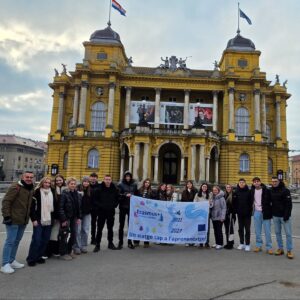 Jedan od prvih zajedničkih izleta bio je posjet Hrvatskom narodnom kazalištu gdje smo sudjelovali u vođenoj turi. Imali smo priliku zaviriti u skrivene hodnike kazališta te prisustvovati baletnoj probi što je bilo posebno zanimljivo iskustvo za sve sudionike. Nakon toga upoznali smo i proces proizvodnje hrvatskog nakita te uživali u obilasku i upoznavanju cijelog postupka izrade.
