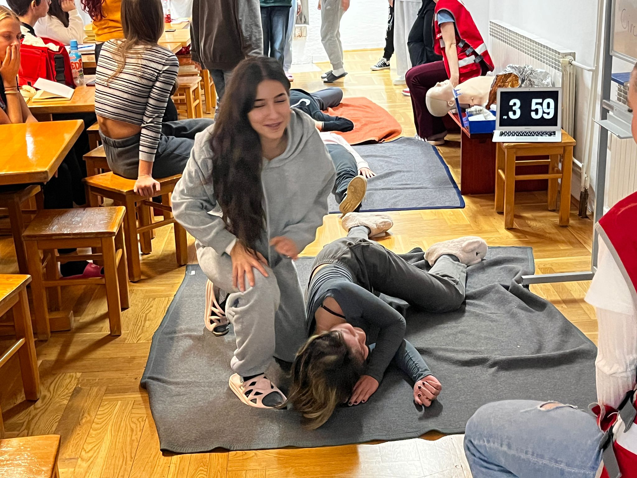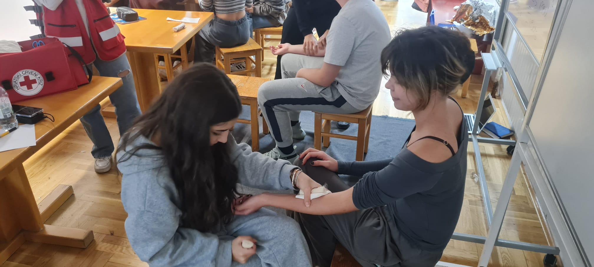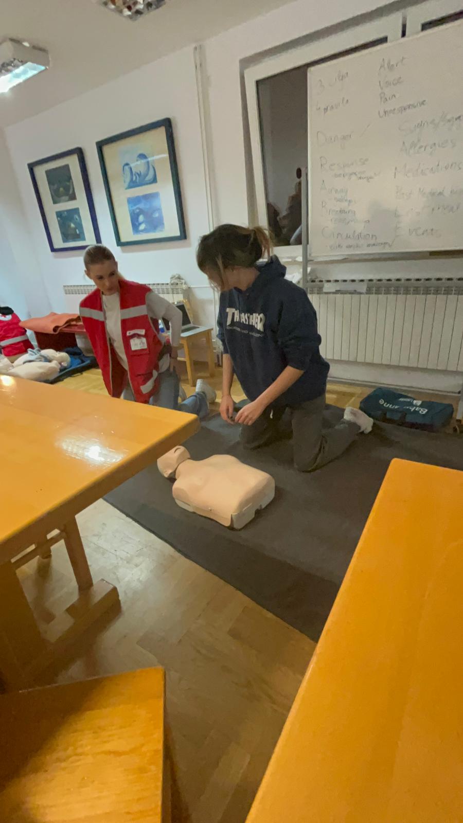 Tijekom tri dana intenzivnih edukacija, zajedno s vršnjacima iz drugih zagrebačkih srednjih škola, stjecali su i usavršavali teorijska znanja i praktične vještine potrebne za brzo i učinkovito reagiranje u situacijama koje zahtijevaju prvu pomoć.