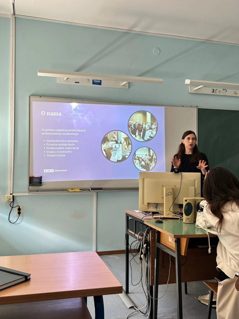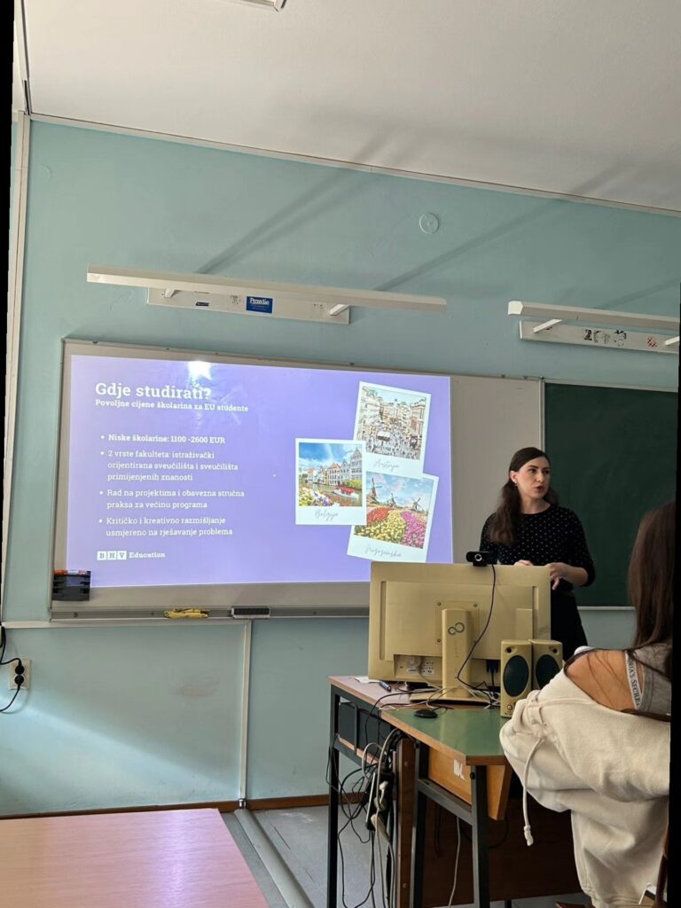 Ovaj put ugostili smo predstavnike organizacije BHV education s kojom već godinama uspješno surađujemo. U sklopu informativnog predavanja, učenici su imali priliku saznati više o studiranju i školovanju u inozemstvu, uključujući zemlje poput Njemačke, Nizozemske, Italije, Švicarske, SAD-a i mnogih drugih.