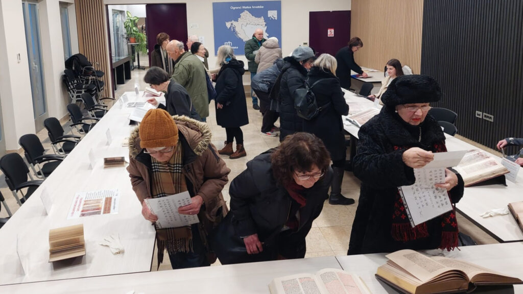 Društvo prijatelja glagoljice i Odjel za hrvatsko glagoljaštvo Matice hrvatske u povodu Dana hrvatske glagoljice 18. veljače organizirali su Večer glagoljskih knjiga. Razgled vrijednih pretisaka glagoljskih misala, brevijara i drugih knjiga u vlasništvu Društva prijatelja glagoljice vodili su Darko Žubrinić i Mirna Lipovac.”